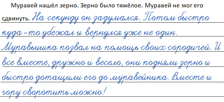 Муравей нашёл зерно. Зерно было тяжёлое. Муравей не мог его сдвинуть. _________