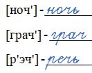 дочь (ж. р.) рожь (ж. р.) мышь (ж. р.) вещь (ж. р.).