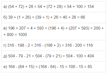 Используя эти свойства сложения и вычитания, вычисли устно наиболее простым способом: