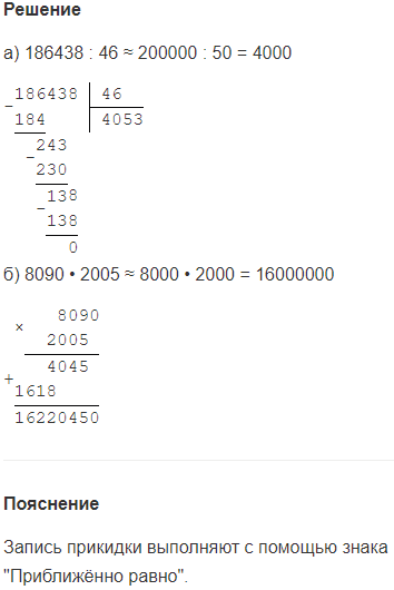 | а) 186438 : 46; | б) 8090 • 2005. |