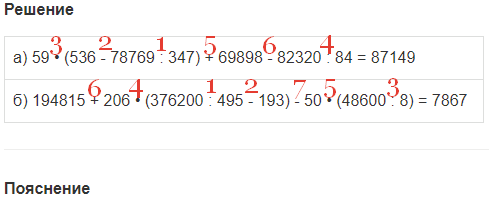 | а) 59 • (536 - 78769 : 347) + 69898 - 82320 : 84; |