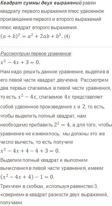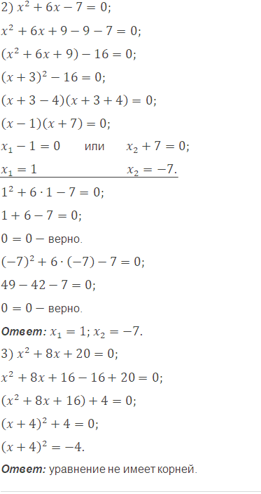 Решите уравнение, выделив в его левой части квадрат двучлена: