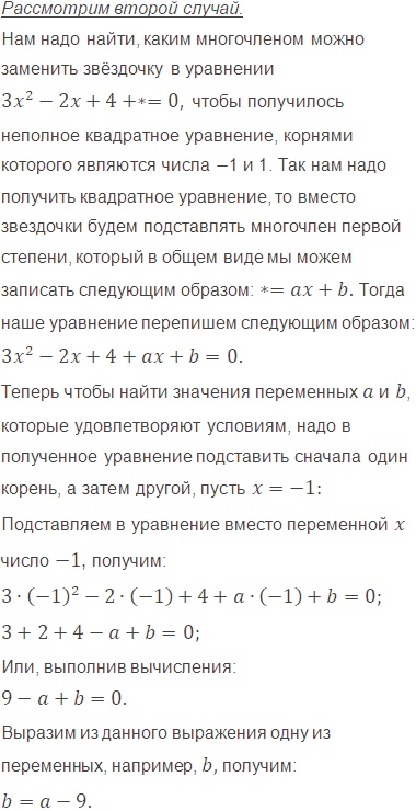 , чтобы получилось неполное квадратное уравнение, корнями которого являются числа: