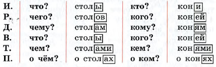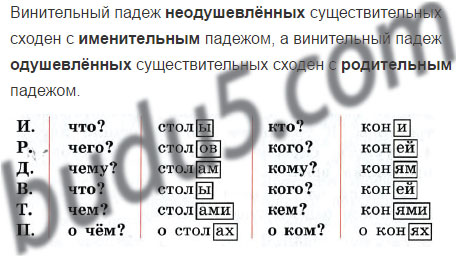 1. Сравните окончания существительных в каждом падеже. С какими падежами сходен винительный падеж?