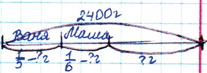 Задание № 5. От дыни массой 2 кг 400 г Ване отрезали 1/5 дыни и Маше отрезали 1/6 дыни. Чему равна масса каждого отрезанного куска? Сколько граммов дыни ещё осталось?