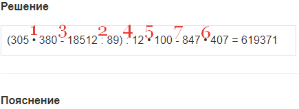 | (305 • 380 - 18512 : 89) : 12 • 100 - 847 • 407 |