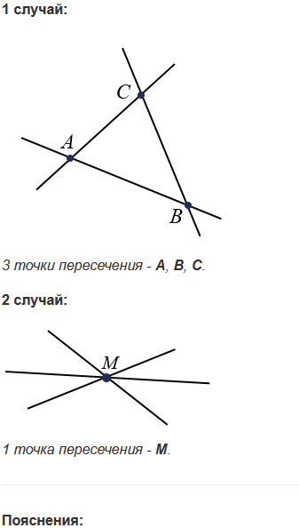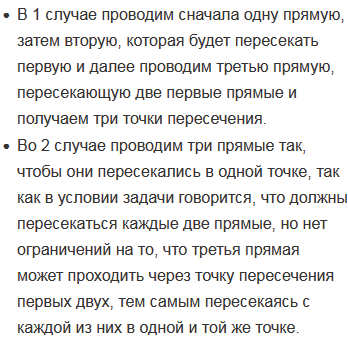 Проведите три прямые так, чтобы каждые две из них пересекались. Обозначьте все точки пересечения этих прямых. Сколько получилось точек?