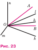 Какие из лучей, изображённых на рисун­ке 23, делят угол АОВ на два угла?