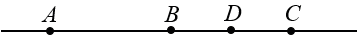 Начертите прямую и отметьте на ней точки А и В. С помощью масштабной линейки отметьте точки C и D так, чтобы точка В была серединой отрезка АС, а точка D - серединой отрезка ВС.