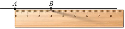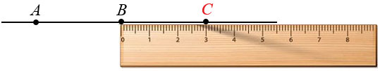 По условию точка В должна быть серединой отрезка АС, т.е. будет делить отрезок АС на два равных отрезка, следовательно, справа от точки В нужно отложить отрезок ВС, равный отрезку АВ, длина которого 3 см.