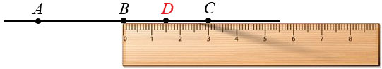 По условию точка D должна быть серединой отрезка ВС, т.е. будет делить отрезок ВС на два равных отрезка. Длина отрезка ВС = 3 см, следовательно, чтобы найти половину этого отрезка, нужно длину отрезка ВС разделить на 2, те. 3 см : 2 = 1,5 см = 15 мм (1 см = 10 мм). Получаем отрезок ВD = 15 мм, который откладываем от точки В с помощью линейки.