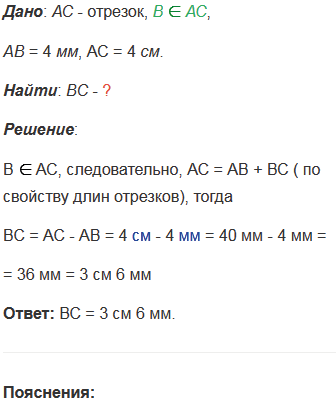 Точка В делит отрезок АС на два отрезка. Найдите длину отрезка ВС, если: