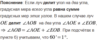 Луч OE делит угол AOB на два угла. Найдите угол AOB, если: