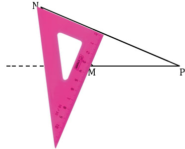 Далее из вершины M проводим прямую вдоль стороны угольника к стороне NP треугольника MNP.