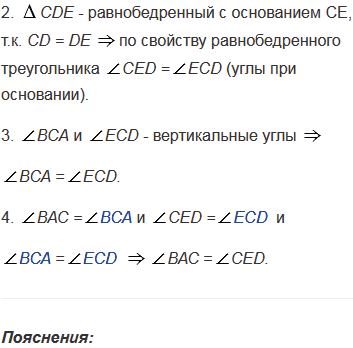На рисунке 73, б) АВ = ВС, CD = DE. Докажите, что ВАС = СED.