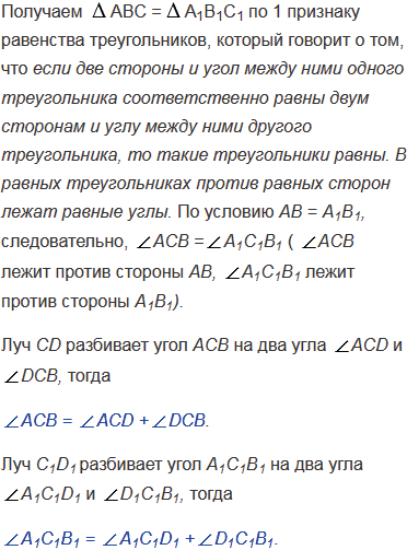 В треугольниках ABC и A1B1C1 AB = A1B1, BC = B1C1,