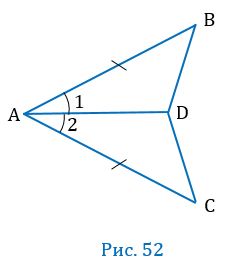 На рисунке 52 (с. 31) AB = AC, BD = DC и
