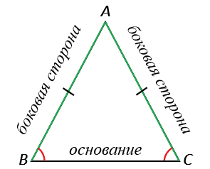 Какой треугольник называется равнобедренным? Как называются его стороны?