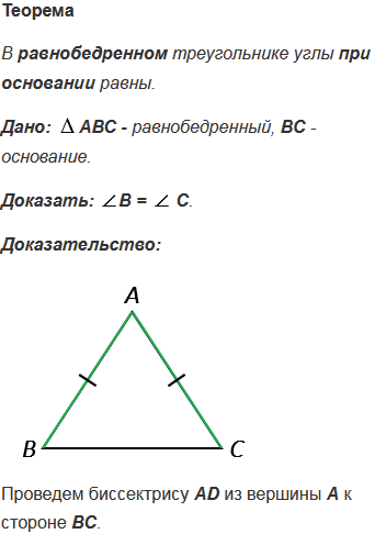 Докажите, что углы при основании равнобедренного треугольника равны.