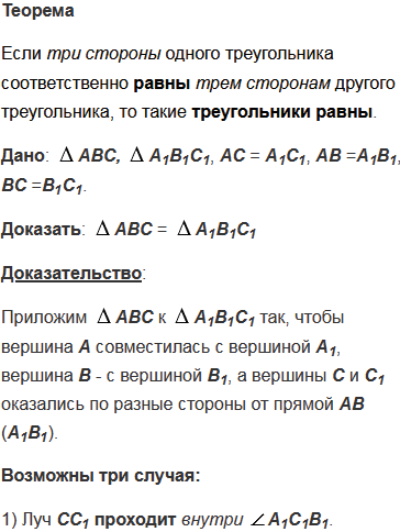 Сформулируйте и докажите теорему, выражающую третий признак равенства треугольников.