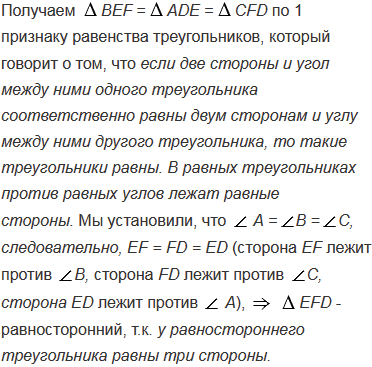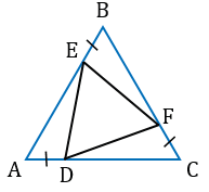На сторонах равностороннего треугольника АВС отложены равные отрезки АD, ВЕ и СF, как показано на рисунке 99. Точки D, E, F соединены отрезками. Докажите, что треугольник DEF - равносторонний.