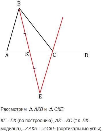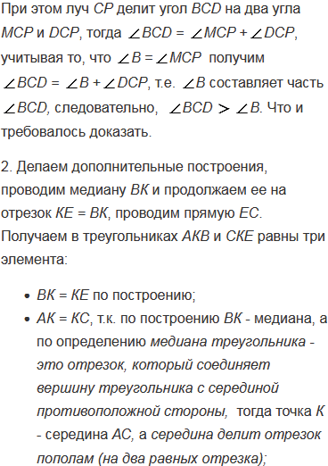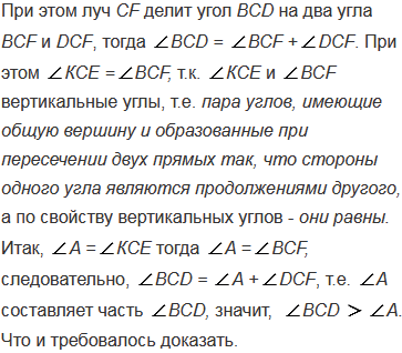 Докажите, что угол смежный с углом треугольника, больше каждого из двух других углов треугольника.