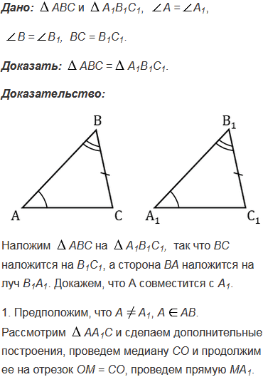 Докажите,что АВС =А1В1С1, А = А1, В =В1, ВС = В1С1.
