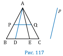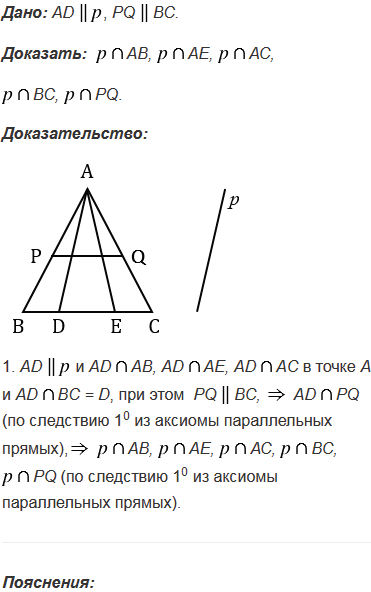 ВС. Докажите, что прямая р пересекает прямые АВ, АЕ, АС, ВС и РQ.