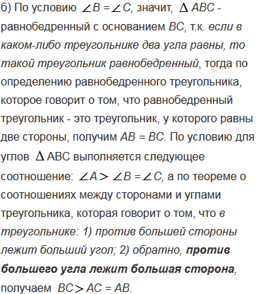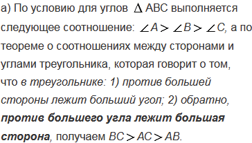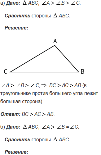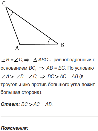 Сравните стороны треугольника АВС, если: а) АВС; б) АВ =С.