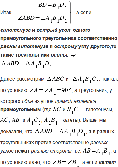 В треугольниках ABC и A1B1C1 углы A и A1 - прямые, BD и B1D1 - биссектрисы. Докажите, что