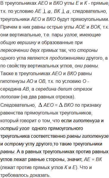 Через середину отрезка проведена прямая. Докажите, что концы отрезка равноудалены от этой прямой.