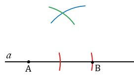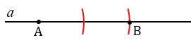б) С помощью линейки проводим прямую и на ней с помощью циркуля отложим отрезок АВ = 2Р1Q1. Для этого произвольно на прямой ставим точку А, с помощью циркуля измеряем отрезок Р1Q1 и строим окружность с центром в точке А радиуса Р1Q1, переставляем острие циркуля в точку пересечения полученной окружности с прямой и еще раз чертим окружность радиуса Р1Q1 (полностью окружности строить необязательно, смотри, выделенное красным цветом). Точку пересечения второй окружности с прямой обозначаем В.