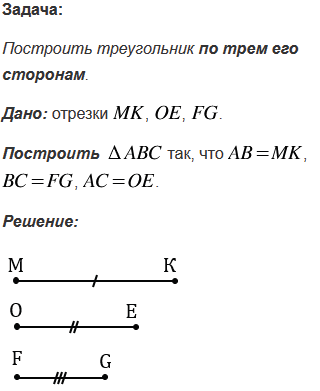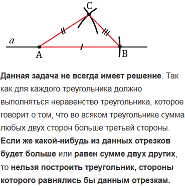 Объясните, как построить треугольник по трём сторонам. Всегда ли эта задача имеет решение?