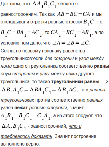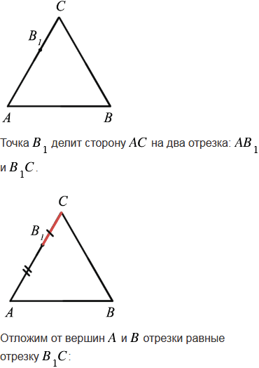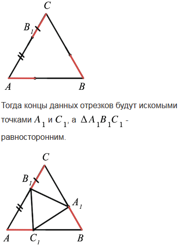 Дан равносторонний треугольник АВС и точка В1 на стороне АС. На сторонах ВС и АВ постройте точки А1 и С1 так, чтобы треугольник А1В1С1 был равносторонним.