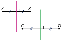 Даны два отрезка AB и CD. Постройте точку M, такую, что МА = МВ и МС = MD.
