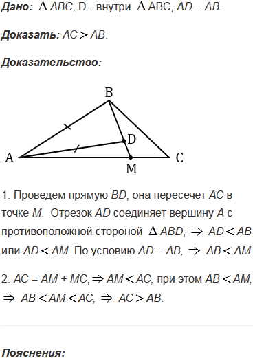 Внутри треугольника АВС взята такая точка D, что АD = АВ. Докажите, что АС