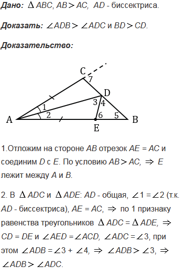 В треугольнике АВС сторона АВ больше стороны АС, отрезок АD - биссектриса. Докажите, что АDВАDС и ВDСD.