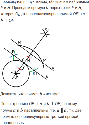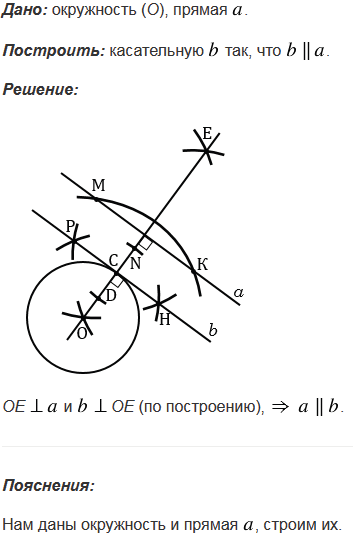 Постройте касательную к данной окружности, параллельную к данной прямой.
