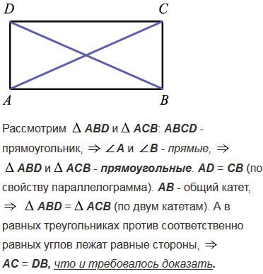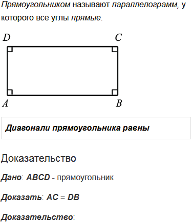 Какой четырехугольник называется прямоугольником? Докажите, что диагонали прямоугольника равны.