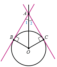 Отрезки касательных к окружности, проведённые из одной точки, равны и составляют равные углы с прямой, проходящей через эту точку и центр окружности.