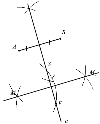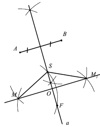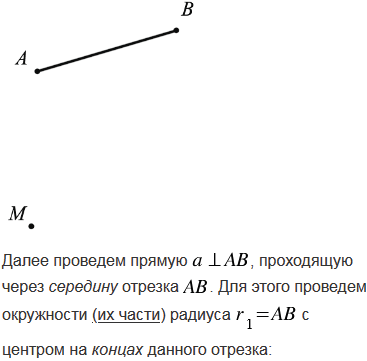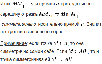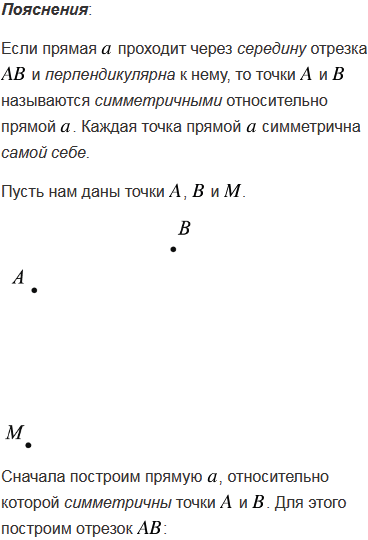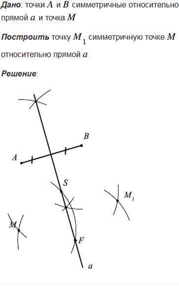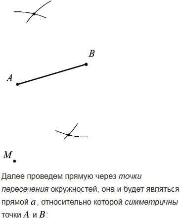 Даны две точки А и В, симметричные относительно некоторой прямой, и точка М. Постройте точку, симметричную точке М относительно той же прямой.