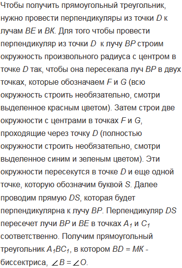 Постройте прямоугольный треугольник АВС, если даны острый угол В и биссектриса ВD.