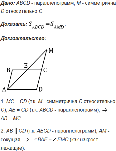 Начертите параллелограмм АВСD и отметьте точку М, симметричную точке D относительно точки С. Докажите, что