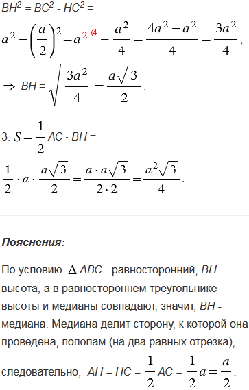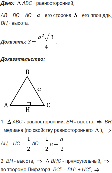 Докажите, что площадь равностороннего треугольника вычисляется по формуле