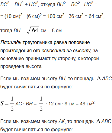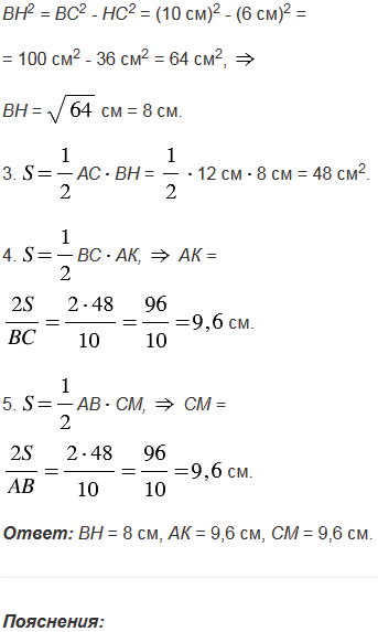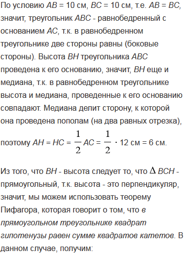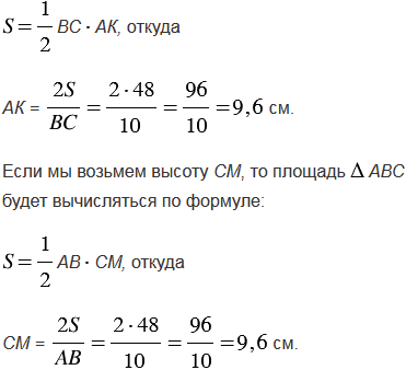 Найдите высоты треугольника со сторонами 10 см, 10 см и 12 см.