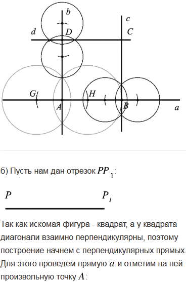Постройте квадрат: а) по стороне; б) по диагонали.
