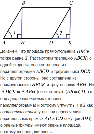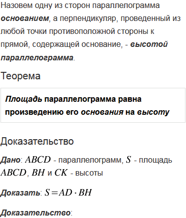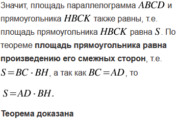 Сформулируйте и докажите теорему о вычислении площади параллелограмма.