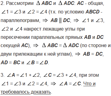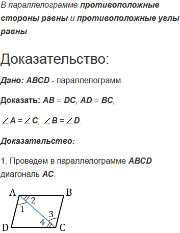 Докажите, что в параллелограмме противоположные стороны равны и противоположные углы равны.