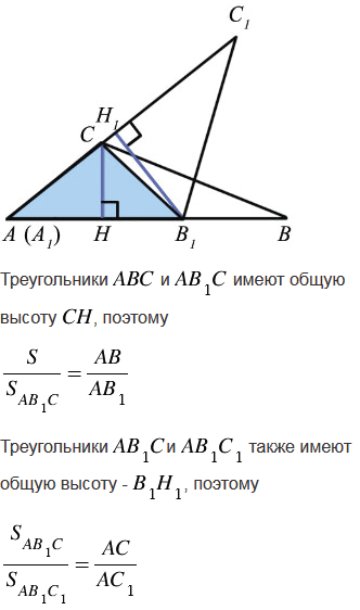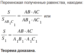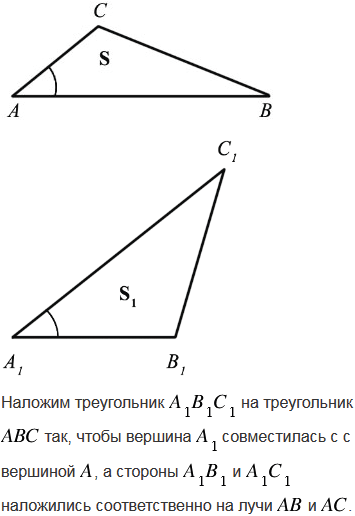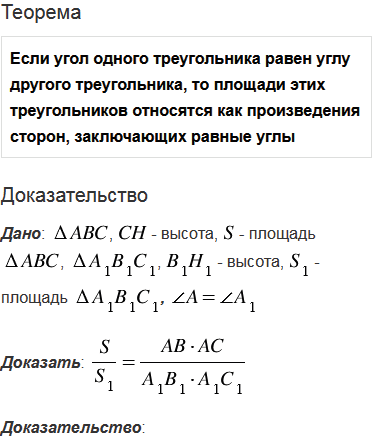 Сформулируйте и докажите теорему об отношении площадей двух треугольников, имеющих по равному углу.