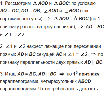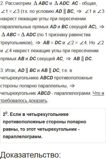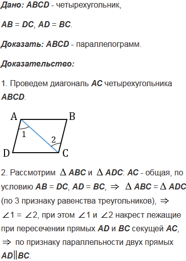 Сформулируйте и докажите утверждения о признаках параллелограмма.